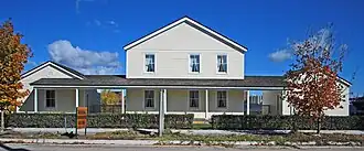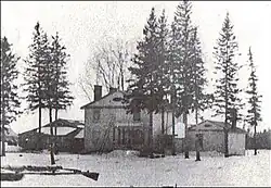 After being appointed to his position in Sault Ste. Marie, Schoolcraft requested the construction of a suitable building to house the agency.[3] Schoolcraft designated a site, and plans were drawn up by Obed Wait, who had earlier designed Michigan's territorial capitol located in Detroit.[3] Construction began in 1826 and was completed in 1827. The building, dubbed "Elmwood" due to the surrounding elms,[6] was the headquarters for Indian affairs throughout the upper Great Lakes, as well as the home of the Schoolcrafts,[6] from its construction until 1833, when the agency headquarters was relocated to Mackinac Island. The building was still used by the agency through the 1830s and 1840s.[3]