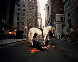Among his works, "Wall Street" a series of staged photographs shot in New York and Israel expressing criticism of Wall Street practices (first exhibited in 2008 just before the Lehman Brothers collapse). Also among other series, "The Box" (exhibited in 2009 at Volta show in Switzerland)[21] and Earl King (exhibited in October 2010). Ganor's work can be found in many art collections including the Tel Aviv Museum of Art,[22] Shpilman institute Photography collection, the Israel Museum in Jerusalem and private collections.[22]