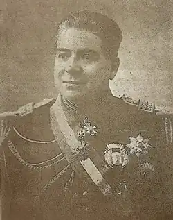 Eloy Gaspar Ureta Montehermoso (Chiclayo, December 12, 1892 – Madrid, October 10, 1965) was a Peruvian army officer who led the Peruvian Armed Forces to victory in the Ecuadorian–Peruvian War of 1941 for which he was awarded the honorary rank of Grand Marshal of Peru in 1946.[1] His first baptism by fire occurred a decade prior during the 1932 Trujillo uprising in which he was commander of the 1st and 3rd military regiments that participated in the conflict.[1] He ran in the presidential election of 1945, but was defeated by José Bustamante y Rivero. He is considered Patron of the Armored Weapon of the Peruvian Army.[2]