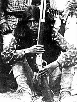 Born in the Arizona Territory, Elsatsoosu (or Elsatsoosh) was one of ten Apaches hired by the U.S. Army as an Indian scout for Lieutenant Colonel George Crook's campaign against the renegades still active following the surrender of Cochise in late 1872. He specifically guided cavalry troopers in the Tonto Basin, where the Western Apache and Yavapais had been successfully conducting raids and eluding troops for several years, battling the Apache in the mountains during Crook's winter campaign of 1872–73. A total of 23 men received the Medal of Honor. Of these, all 10 Indian scouts, including Elsatsoosu, received the award[1][2][3] on April 12, 1875,[4][5][6] for "gallant conduct during campaigns and engagements with Apaches".[7][8] The other scouts were William Alchesay, Blanquet, Chiquito, Jim, Kelsay, Kosoha, Machol, Nannasaddie and Nantaje.[9][10][11][12][13]