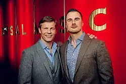 At the end of May 2009, Omerbegovic founded the fashion label Pusher Apparel.[34] That same year, the new fashion label's products were integrated in the marketing efforts of the album Jung, brutal, gutaussehend, with rappers Kollegah and Farid Bang presenting the label's products in their music videos, press photos, and on pictures in the album's booklet. Pusher Apparel is part of the network of the Bravado Merchandise GmbH, a sub company of Universal Music Group, and is run by Frank Briegmann.[35] The label's product line primarily targets sporty male clients between 13 and 28 years of age. Sales are exclusively made via the company's online shop.[36] In June 2016, rappers Gzuz and Bonez MC of the 187 Strassenbande signed a cooperation agreement with Pusher Apparel. At the same time, Gzuz and Bonez MC released their first streetwear collection through the label.[37]