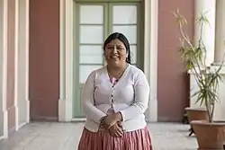 Elvira Espejo Ayca (born 1981) is an Indigenous Bolivian artist, poet, and the director of the National Museum of Ethnography and Folklore in La Paz until 2020. In 2020 she was a joint winner of the Goethe Medal for improving cultural exchange. She is Aymara and Quechua and speaks both of the Aymara and Quechua languages.[1]