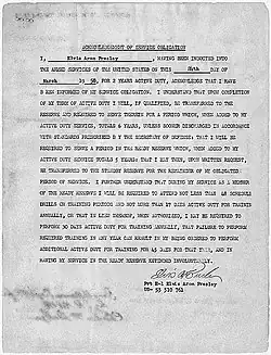 - ^ Presley, Elvis Aron; DD 214: Armed Forces of the United States Report of Transfer or Discharge, U.S. Department of Defense, March 5, 1960