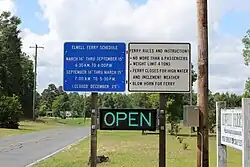 Elwell Ferry is an inland cable ferry which has operated since 1905 on Elwell Ferry Road between NC Highway 53 and NC Highway 87, crossing the Cape Fear River and connecting the communities of Carvers Creek and Kelly in Bladen County, North Carolina.