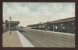 In the 1920s there were carriage sidings to the east of the station which were used by stock for local all stations trains towards Newmarket, Peterborough, King's Lynn and Norwich Thorpe. The engine shed and goods yard were located south of the station and a level crossing was located immediately north of the station.[4] The level crossing existed because the underbridge had limited clearance so taller lorries had to travel this way sometimes causing delays to the railway services.