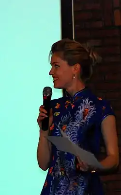 Elyse Ribbons (born October 27, 1980) is an American entrepreneur, writer, businesswoman, and playwright who lives and works in Beijing, known in China by her Chinese name Liu Suying (Chinese: 柳素英).[1] She spends time on both corporate and media work (via newspaper columns, a nationally syndicated radio show on China Radio International,[2] regular news media appearances and filming movies), and is the founder and currently the CEO of GeiLi Giving, the winner of several awards in the startup[3] and social entrepreneurial[4] space. She has authored several articles for Forbes magazine on business, culture, and life in China.[5]