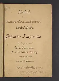 - ^ Abschrift eines im Privatbesitz des Herrn von Gülich befindlichen handschriftlichen Guarani-Fragmentes : im Auftrage von Julius Platzmann für Herrn Dr. Karl Henning. 1878. Retrieved 2025-05-21.