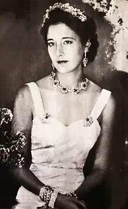 On 4 March 1935, she married Infante Jaime, Duke of Segovia, a member of the Spanish royal family, at the Church of Sant'Ignazio in Rome.[4] The marriage was arranged by their parents.[5] Her husband, the son of King Alfonso XIII, was born deaf and mute, and had had to relinquish his rights to the Spanish throne.[4] Although he renounced his rights to the Spanish throne,[6] her husband was the Legitimist claimant to the former French throne and was granted the Dukedom of Segovia by his father.[4][2] They had two sons: