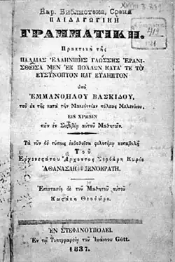 Emanuil Vaskidovich (Bulgarian: Емануил Васкидович; 1795 – 30 September 1875) was a Bulgarian National Revival enlightener, the founder of the first secular school in the Bulgarian lands.[1][2]