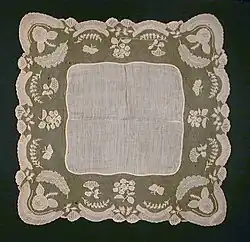 It originated in Chamba kingdom of Himachal Pradesh in 17th century. This embroidery flourished in the princely hill states of Kangra,[7] Chamba, Basholi, and other neighbouring provinces. The Chamba region has highly skilled craftsmen. Chamba embroidery has its own distinctive style, small squares or rectangles of clothe embroidered with untwisted silk threads.[8] While untwisted silk is most common some Chamba embroidery make use of thin metal wires or metallic yarn.[9] While the chamba rumal originated in the 17th century it reached widespread popularity in the 18th century after rulers in the Himalayan region patronized Chamba Rumal embroiderers.[10] The original Chamba embroideries were done by women or young children, the embroideries often depicted gods or goddesses.[8] Original Chamba embroideries were very important in marriages as the embroideries were kept as the brides dowry.[8] Chamba embroideries often began by drawing an outline on the rectangular square of fabric, while originally embroidered by women at the height of popularity in the 18th century many male painters drew the outlines and embroidered the clothe themselves to ensure high quality work.[8] Not long after its height of popularity in the 18th century the chamba rumal's popularity declined. The rumals began to lose their sacredness, today most rumals are made by families trying to sell them to survive, and the Chamba Rumals are not of the same quality as they were in the 17th and 18th century.[8] While this art style has declined over the years and almost been lost, in 2009 Lalita Vakil was given the Shilp Guru award for her ability and skill in Chamba embroidery.[11]