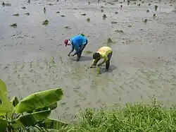The means by which agriculture expanded into the Philippines is argued by many different anthropologists and the exact date of its origin is unknown.[1][2][3][4] However, there are proxy indicators and other pieces of evidence that allow anthropologists to get an idea of when different crops reached the Philippines and how they may have originated.[5][6] Rice is an important agricultural crop today in the Philippines and many countries throughout the world import rice and other products from the Philippines.[7]