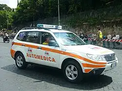 Vehicles used as ambulances in Italy comply with most aspects of the European standard for ambulances, CEN 1789, as issued by the European Committee for Standardization.[11] The visual identity provisions of the standard are not yet being followed.