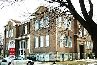 Emerson School is a historic building located in Waterloo, Iowa, United States. It is oldest extant school campus on the city's west side.[2] Emerson was established in 1893 when its first building was constructed on this property. It was the third school in West Waterloo. The original building was replaced when the present main building was completed in 1906. The annex was built ten years later to accommodate the school's increased enrollment. They are connected by a hyphen. The complex was designed by Waterloo architect John G. Ralston. The original building is a two-story brick structure on a raised limestone basement designed in the Neoclassical style. It features broken pediment gable ends, stylized pilasters on the gable ends of the upper level, Palladian dormers, and corner pilaster capitals. The annex was designed in the Second Renaissance Revival style. It is also a two-story brick structure. Typical of this style the annex features distinct horizontal divisions separated by belt and stringcourses. There is also a parapet frieze across the top. In 1973 the building became Expo Alternative High School.[3] The building was closed in 1981, and it was later sold. It was listed on the National Register of Historic Places in 2004.[1]