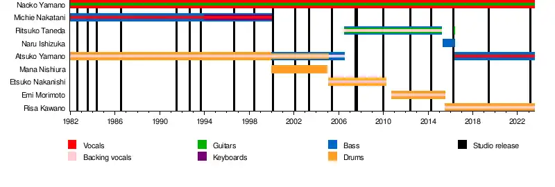 - Naoko Yamano – lead and backing vocals, guitar (1981–present)