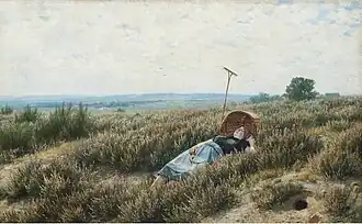 He retired from all of his teaching positions in 1891 and returned to Bad Schmiedeberg, where he and his wife, Cäcilie, retired to a villa he had recently built. There, he painted hundreds of views of the Düben Heath, many with staffage. Most of them are now in private collections. In addition to painting, he did some wood carving; notably a crucifix for the local Protestant church.
