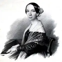 In 1841, she moved to the regional capital city of Stettin (now Szczecin, Poland) where she studied composition with Carl Loewe, a central figure in the musical life of the city.[1][4] The German writer Marie Silling claims that Loewe, after auditioning her, claimed "You actually know nothing and everything at the same time! I shall be the gardener who grows your talent from a bud to a beautiful flower"[5] With him, she wrote Die Fischerin, her only Singspiel.[6]