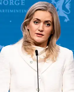 - ^ "Emilie Enger Mehl (Sp) blir tidenes yngste justisminister". nrk.no (in Norwegian). 14 October 2021. Retrieved 21 October 2021.
