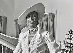 Besides her charm school, Miles continued to design fashion and organize shows. She was most famous for her hats and by 1983 her traveling fashion shows were booked two years out.[9] She stated "a woman's outfit was always incomplete without a...hat".[1] She showed her designs many times in the Ebony Fashion Fair.[14][15] She also had annual shows (the last Sunday in February "Black History Month") in downtown Newark at The Robert Treat Hotel grand ballroom and the Terrance ballroom.[16] She also produced fashion shows and shared the stage with prominent names. She was a long-time collaborator with Fashion Maven, Marie Westbrook Levens, a Couture Seamstress and Dressmaker who lived in Newark and once operated her own dress shop and couture label "It Has To Be You" in Maplewood, NJ.[14][1] In 1962 in Merchantville, NJ she co-hosted the "Ella Fitzgerald and Emily Miles Luncheon and Fashion Show".[17] She has been featured in various books about African American fashion including African American Dress and Adornment: a Cultural Perspective,[18] Black and Beautiful: How Women of Color Changed the Fashion Industry[19] and Skin Deep: Inside the World of Black Fashion Models.[12] "What Miles produces", wrote one New Jersey newspaperwoman, "is a personal extravaganza, a production in which all the clothes are her own designs, all the models trainees or graduates of her own Belle Meade Modeling School".[12]