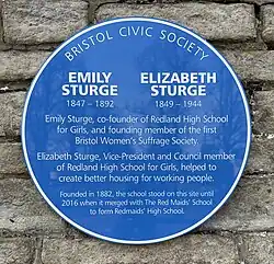 - ^ "Redmaids High School – blue plaques celebrate votes for women – Bristol Civic Society". 20 March 2018. Retrieved 11 September 2020.