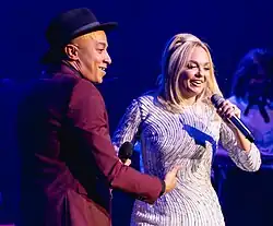 In February, and again between May and June 2009, Bunton starred as guest presenter on Heart London's Heart Breakfast alongside Jamie Theakston and Harriet Scott.[61] Bunton began hosting her own pre-recorded Saturday drive time[62] radio show on Heart in the Saturday afternoon slot 4–7 pm starting on Saturday 13 June 2009.[63] Bunton provided maternity leave cover for Heart Breakfast co-presenter Harriet Scott from 3 October until 23 December 2011 on Heart London.[64] Following Harriet Scott's departure from Heart Breakfast in November 2012, it was announced Bunton would succeed her as co-host along with Jamie Theakston from 7 January 2013.[65] She co-presented with Theakston until 10 December 2018, making her final Heart Breakfast appearance on 14 December.[66] In March 2017, Bunton won the awards for "Radio Presenter of the Year" and "Digital Radio Programme" at the annual Television and Radio Industries Club (TRIC) Awards for her work on Heart London.[67] In January 2018, Bunton was offered a new Sunday night show that runs between 7 and 10. The first show aired on 14 January.