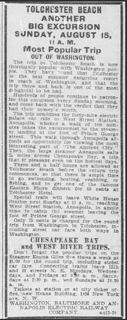 One of her more popular destinations was Tolchester Beach, Maryland.[1]