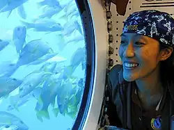 In June 2003, Hwang became an aquanaut through her participation in the joint NASA-NOAA, NEEMO 5 (NASA Extreme Environment Mission Operations) project, an exploration research mission held in Aquarius, the world's only undersea research laboratory. NEEMO 5 was the longest NEEMO mission to that date, with the crew living underwater for fourteen days.[3][4] During the mission, Hwang took part in a telemedicine simulation in which two fellow crew members, directed remotely by a doctor in Houston, used an ultrasound machine to diagnose a supposed kidney stone.[6]