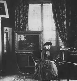 Cooper became an artist during the 19th century when there was a significant number of women who became successful, educated artists, a rarity before that time, except for a few like Angelica Kauffman and Louise Élisabeth Vigée Le Brun (1755–1842).[18] The emerging women artists created works with a different perspective than men, challenged the limited concepts of femininity and created a genre of floral-female landscape paintings, in which "the artist placed one woman or more in a flower garden setting and manipulated composition, color, texture and form to make the women look as much like flowers as possible." These artists were among the educated, sophisticated "New Women" beginning in the late 19th century, whose influence was largely ignored by art scholars.[17]