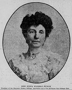Emma Maddox Funck (November 19, 1853 – March 21, 1940) was an American suffragist and served as president of the Maryland Woman Suffrage Association (MWSA).