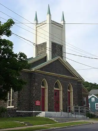 Emmanuel Episcopal Church is a historic Episcopal church complex located at Little Falls in Herkimer County, New York, USA. The complex consists of the original 1835 church building, an 1853 Italianate style parsonage, and a parish hall built about 1937. The church is a simple rectangular building in the meetinghouse style with a bell tower. It is two stories and built of limestone.[2]