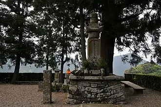 Emon Saburo's grave is beside the path between Temple 11 and Temple 12, at the spot where he fell. Near Temple 46 there are eight burial mounds, which can still be seen today, said to contain the remains of his eight sons. At Ishite-ji there is a casket containing the eponymous stone.[1]