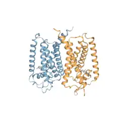 Emopamil binding protein is a protein that in humans is encoded by the EBP gene, located on the X chromosome.[5] The protein is shown to have a high-affinity reception for anti-ischemic drugs, such as Emopamil, resulting in its discovery and given name. EBP has a mass of 27.3 kDa and resembles the σ2-receptor that resides in the endoplasmic reticulum of various tissues as an integral membrane protein.[6]