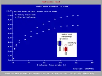 EnDrain is a model for a drainage equation. It offers the possibility to calculate drain spacing given the elevation of the water table or, alternatively, the elevation given the spacing. It can also calculate the hydraulic conductivity, given spacing and elevation.[2]