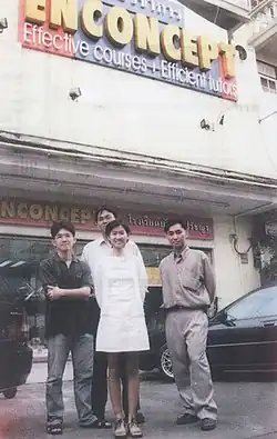 Enconcept E-Academy was established in March, 1995 at Soi Watphaitan, Bangkok. The school opened for upper secondary school level tutorial in subjects such as English, French, Social Studies, Thai, and Mathematics. It began with seven students but grew to 400.[1] Later, it focused on the English language led by Ms. Arisara Tanapakit or Kru P’Nan.[2]