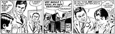 From December 3, 1978, to September 20, 1980, Encyclopedia Brown was a daily and Sunday comic strip syndicated by Universal Press Syndicate. The artwork was done by Frank Bolle, and Donald J. Sobol was credited as the writer.[2] When the strips were collected into books in the mid-1980s, the strip was credited to Elliot Caplin, based on Sobol's characters. The strips adapted Sobol stories, both ones that had originally been Encyclopedia Brown tales and ones that had been part of Sobol's syndicated Two-Minute Mysteries features.[8]