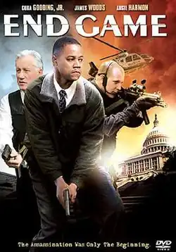 End Game is a 2006 American action film written and directed by Andy Cheng, and starring Cuba Gooding Jr. as Secret Service agent Alex Thomas, who is shot in the hand while unsuccessfully trying to protect the President (Jack Scalia) from an assassin's bullet. Later, with the help of a persistent newspaper reporter named Kate Crawford (Angie Harmon), he uncovers a vast conspiracy behind what initially appeared to be a lone gunman. The film co-stars James Woods, Burt Reynolds, and Anne Archer. This film was originally set to be shown in cinemas by MGM in 2005, but was delayed by the takeover from Sony and eventually sent direct-to-DVD.