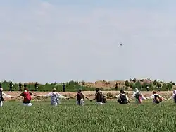 The youth climate movement Fridays for Future Deutschland (FFFD) called for an international protest event for climate protection in Aachen on the 21 June 2019, which drew 40000 people from 17 countries.[9] It was assumed that participants in the Fridays for Future demonstration would also participate in the actions of Ende Gelände.[10] In advance, the police had warned of an instrumentalization of Fridays for Future by Ende Gelände 2019, which was seen by many as a "deliberate attempt to divide the movement," but instead it led to public statements of solidarization of Fridays for Future with Ende Gelände,[11][12] stating that civil disobedience was a legitimate form of protest to save the future, but, in the demonstration on 22 June 2019 in Hochneukirch/Jüchen in the direct neighbourhood of the open-pit mine,[13] that Fridays for Future would remain on the legal side.[14][15][12]