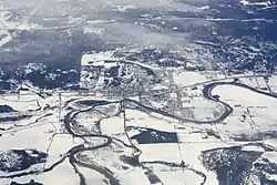 In 1887, plans were made for a post office at the town and townsfolk began debating what its formal name should be. That year, the snow melt in the mountains caused a particularly high flood of the Shushwap river in the area. It coincided with a meeting of the town's literary group, and one of the members read the poem "The High Tide on the Coast of Lincolnshire, 1571" by Jean Ingelow about a flood in Lincolnshire, England, of which local inhabitants were warned by the bells of Boston Stump ringing a peal titled "Brides of Enderby".[2][3] Although others were suggested, Enderby was chosen as the most appropriate name.[2] There are three places called Enderby in Lincolnshire, all in East Lindsey district: Bag Enderby, Mavis Enderby and Wood Enderby.