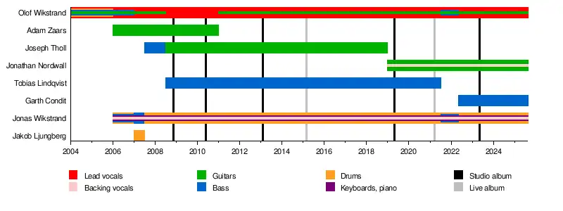- Olof Wikstrand – lead vocals (2004–present), guitars (2004–2008, 2011–present), bass, (2004–2007, 2007–2008, 2021–2022), drums (2004–2006)