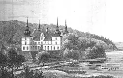 This Renaissance castle was adapted to the Baroque style for Gerhard de Lichtenberg with the assistance of Nicolaus Hinrich Rieman. By 1740 it was a white-washed building with a black-glazed tile roof and onion domes topping the four towers.[1]