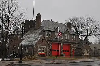 The Engine Company 16 Fire Station, also known as the Blue Hills Fire Station, is located at 636 Blue Hills Avenue in Hartford, Connecticut. Built in 1928, it is one of the city's most architecturally distinctive fire stations, a Tudor Revival structure designed by the local firm of Ebbets & Frid. The building was listed on the National Register of Historic Places on March 2, 1989.[1] It continues to serve its original function, housing Engine Company 16 of the Hartford Fire Department.