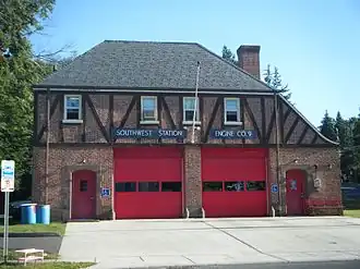 The Engine Company 9 Fire Station is located at 655 New Britain Avenue in Hartford, Connecticut. Built in 1929, it is a distinctive application of the Tudor Revival to firehouse design, and it was one of the city's first "suburban" fire stations, set in an originally less-developed outlying area. The building was listed on the National Register of Historic Places on March 2, 1989.[1] It continues to serve its original function, housing Engine Company 9 of the Hartford Fire Department.