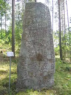 The England runestones (Swedish: Englandsstenarna) are a group of about 30 runestones in Scandinavia which refer to Viking Age voyages to England.[1] They constitute one of the largest groups of runestones that mention voyages to other countries, and they are comparable in number only to the approximately 30 Greece Runestones[2] and the 26 Ingvar Runestones, of which the latter refer to a Viking expedition to the Caspian Sea region. They were engraved in Old Norse with the Younger Futhark.