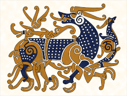 The runestone U 344, in the style Pr3, was found in 1868, at Yttergärde, by Richard Dybeck,[9] but it is today raised at the church of Orkesta, see Orkesta Runestones. Together with U 194, it is considered to be the earliest example of the Urnes style in Uppland.[5]