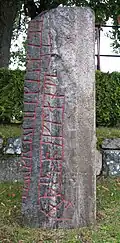 The England runestones (Swedish: Englandsstenarna) are a group of about 30 runestones in Scandinavia which refer to Viking Age voyages to England.[1] They constitute one of the largest groups of runestones that mention voyages to other countries, and they are comparable in number only to the approximately 30 Greece Runestones[2] and the 26 Ingvar Runestones, of which the latter refer to a Viking expedition to the Caspian Sea region. They were engraved in Old Norse with the Younger Futhark.
