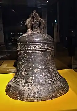 The discovery of the ship's bell in 2012 enabled the identity of the wreck to be confirmed by the Receiver of Wreck and the UK Ministry of Defence.[76][81] The bell was inscribed with "1681", the year it was cast.[80]