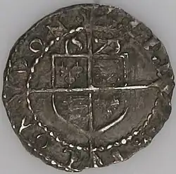 The silver three-farthing (3⁄4d) coin was introduced in Queen Elizabeth I's third and fourth coinages (1561–1582), as part of a plan to produce large quantities of coins of varying denominations and high metal content. It was worth 1⁄16 shilling, or 1⁄320 pound sterling.