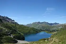 Engstlensee is a natural lake used as a reservoir in the municipality of Innertkirchen, Bernese Oberland, Switzerland. It is located near Joch Pass at an elevation of 1850 m. It can be reached by gondola and by foot from Titlis.