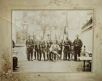 The Enidzhevardar Revolutionary Committee was composed of Tomo Tushiyanov, Mile Pophristov, Georgi Harizanov, Georgi Pophristov, Dimitar Karabashev and Petar Hadzhirindov (replaced after his exposure by Mihail Kayafov).[8] Gradually, the town organization and church institutions in Enidze Vardar tried to seize the leadership of the revolutionary region from Apostol Petkov, for which he threatened the chairman of the Enidze Vardar Bulgarian Church Municipality Nikola Shkutov with murder.[9]