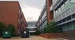 Three years after Enloe opened, Aycock was created on an adjacent campus as a junior high school to educate students in the seventh through ninth grades, taking the place of recently shuttered Hugh Morson Junior High.[9] Enloe became a senior high school with concentrated education for grades ten through twelve. In 1973, Enloe became the first fully integrated high school in Raleigh[10] and the first fully integrated high school to hire a black principal. Enloe absorbed the Aycock campus in 1979, becoming a modern high school focused on educating ninth through twelfth grade students. The Aycock building became the East Building, while the original Enloe complex became the West Building.[5]