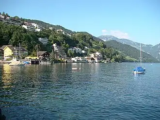 The municipality is located between Lake Lucerne and the foot of the Bürgenberg mountain.